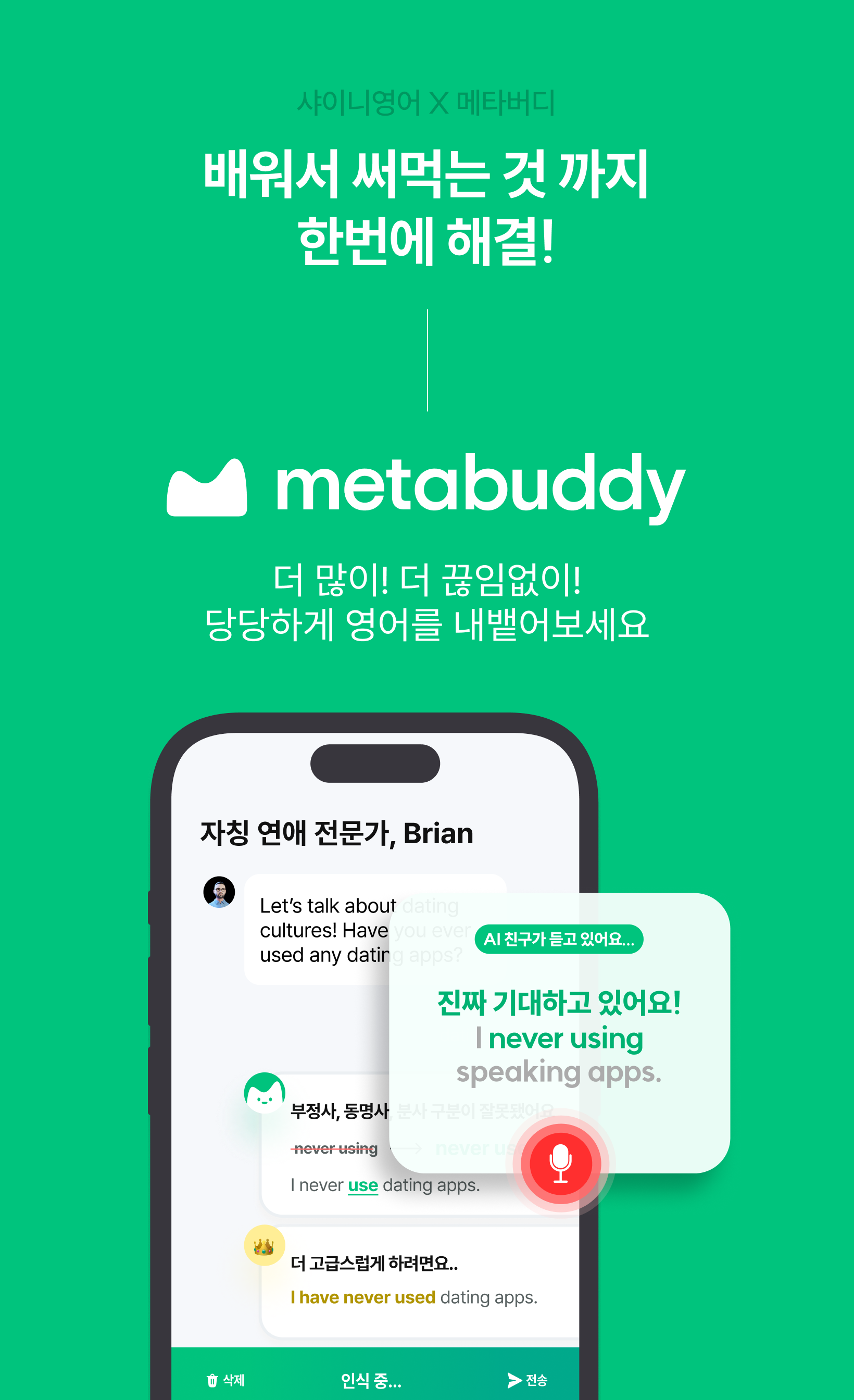 - 메타버디 어플 관련 문의는 ‘메타버디 채널톡’으로 부탁드립니다. 샤이니영어로 문의주실 경우 적절한 응대가 불가합니다.